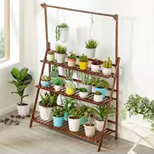 Soporte de Plantas de Madera Plegable – Diseño Vertical de Varias Capas 🌿